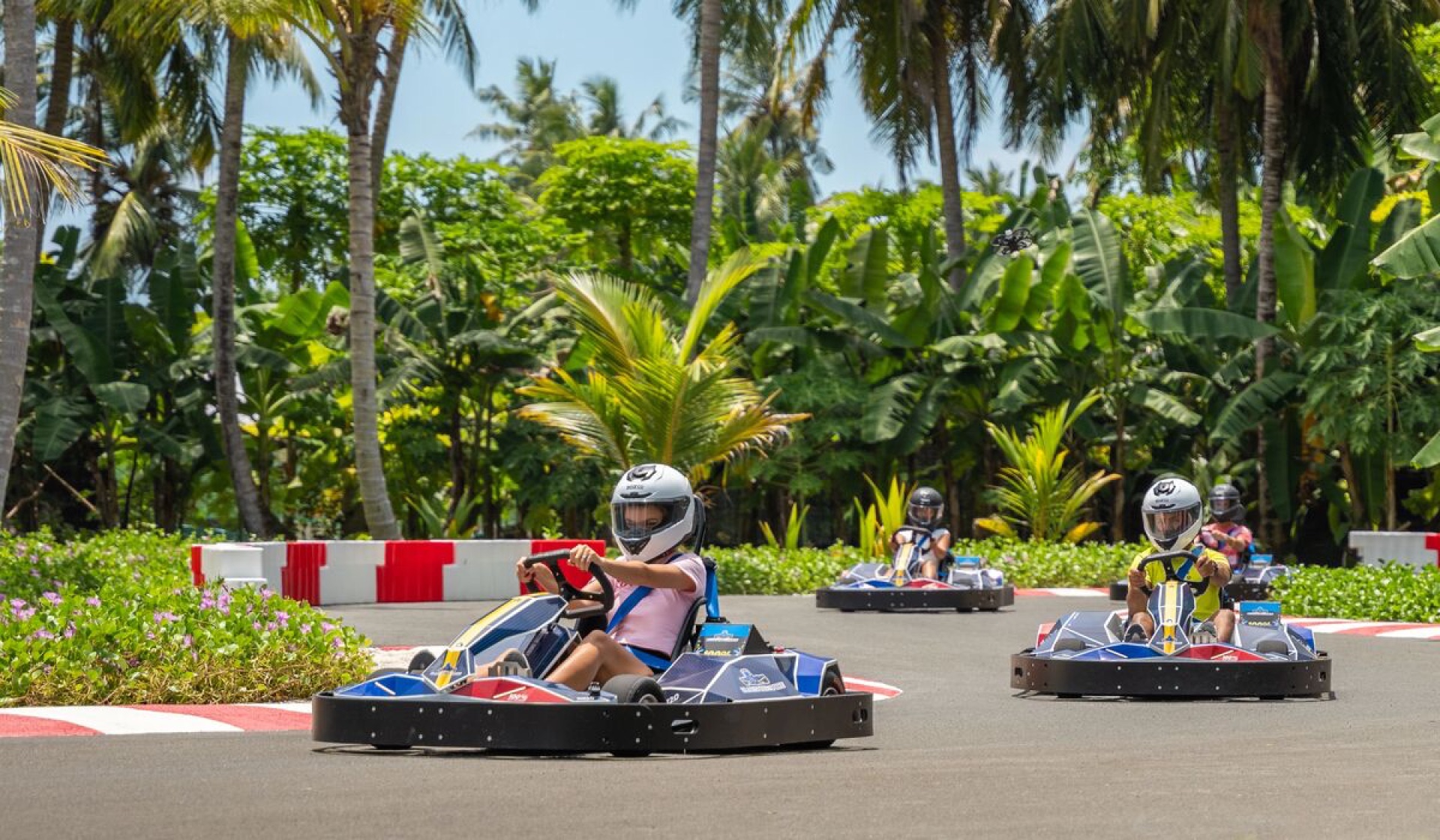 The go-karting starts at just $35 USD for a 10-minute session, with exclusive packages available for couples, families, and groups.