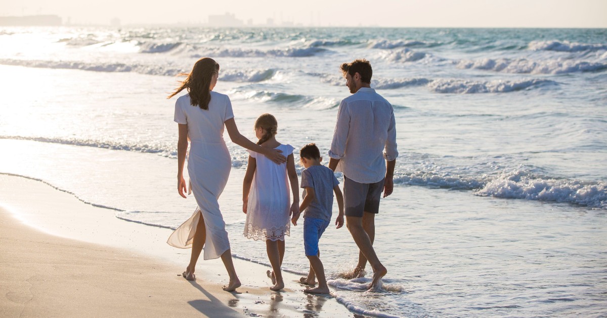 jumeirah-hotels-and-resorts-family-of-four-walking-on-beach